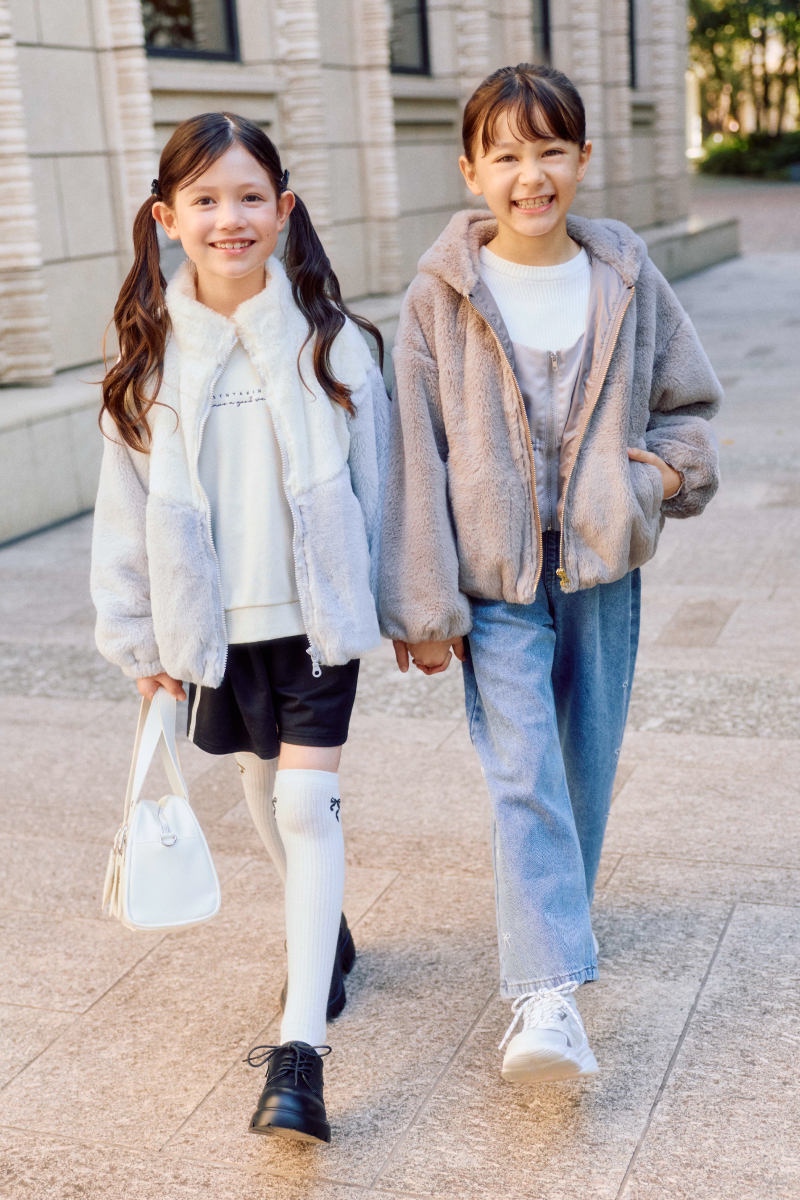 - 【KIDS】サイズ展開豊富なふわふわファーアウター