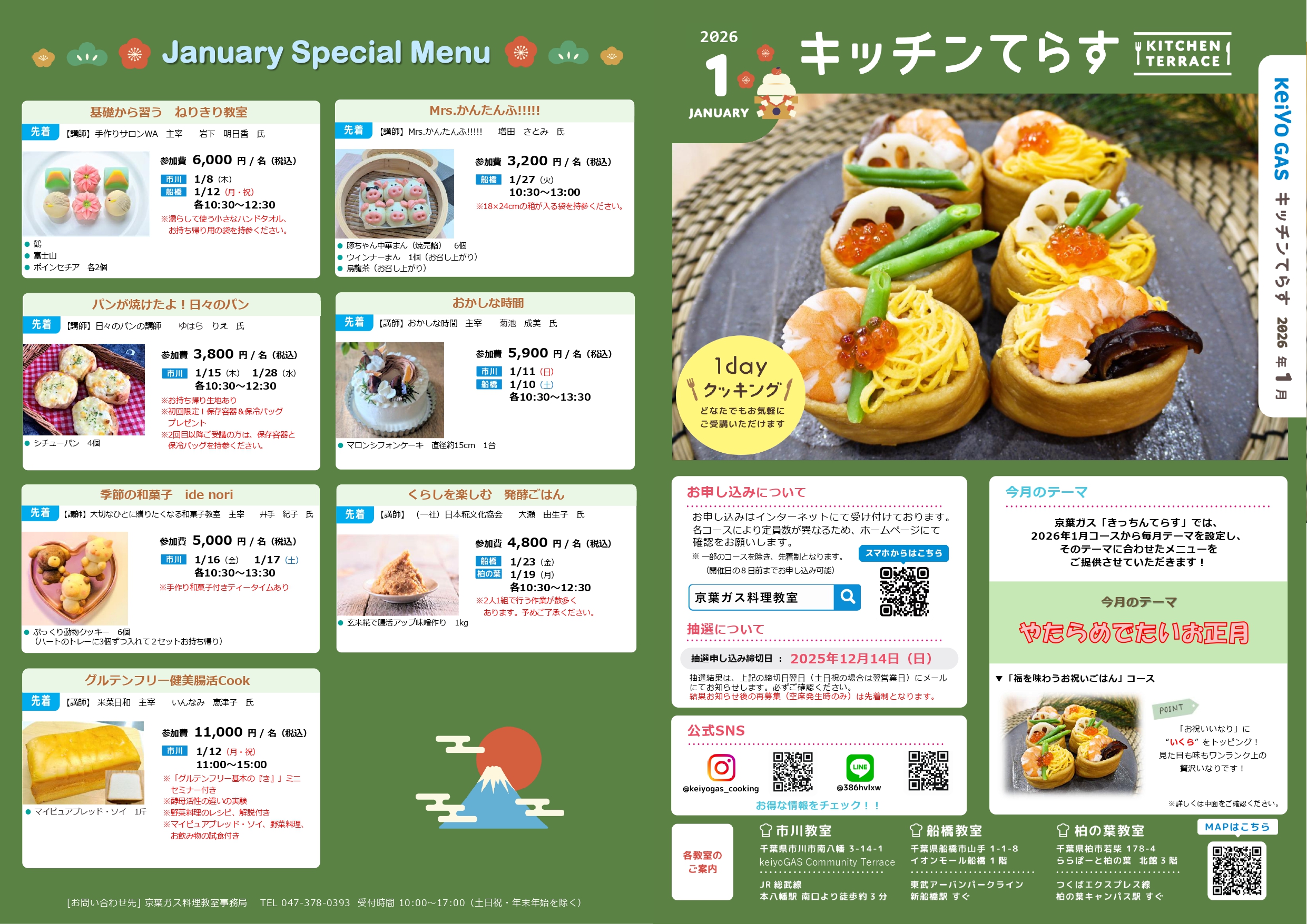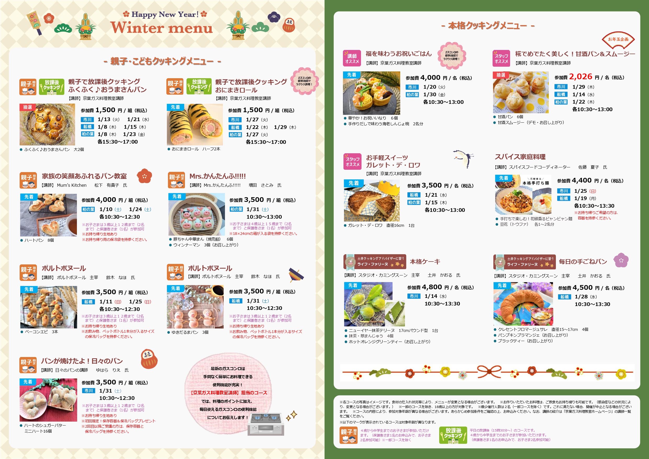 料理教室2026年1月コースの募集受付を開始しました。