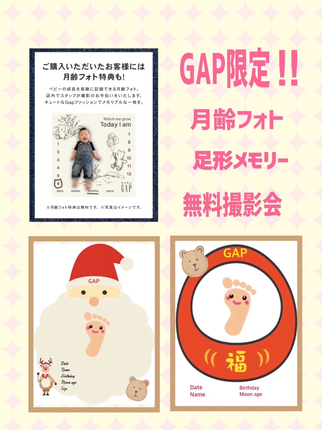 可愛いベビーの記念に月齢足形&フォト撮影しませんか?GAPでは可愛いアイテムが沢山♡ショッピングサポートでお洋服選びのお手伝い致します。