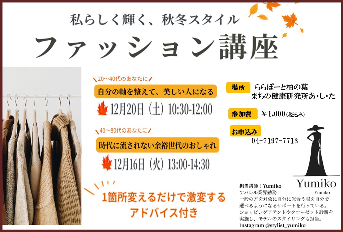 - 私らしく輝く、秋冬スタイルファッション講座(有料)