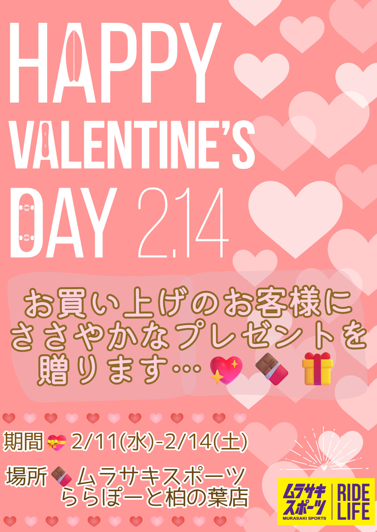 - ムラサキスポーツ柏の葉店限定 バレンタインイベント開催!!