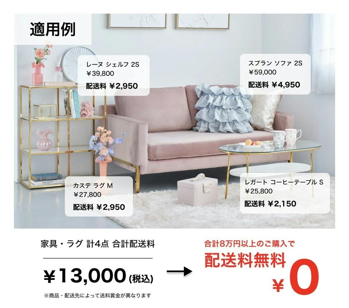 家具含めた税込み8万円以上のご購入で配送料が無料となります。
