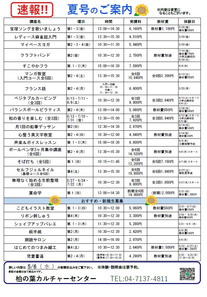 - 04/04 更新 | 柏の葉カルチャーセンター
