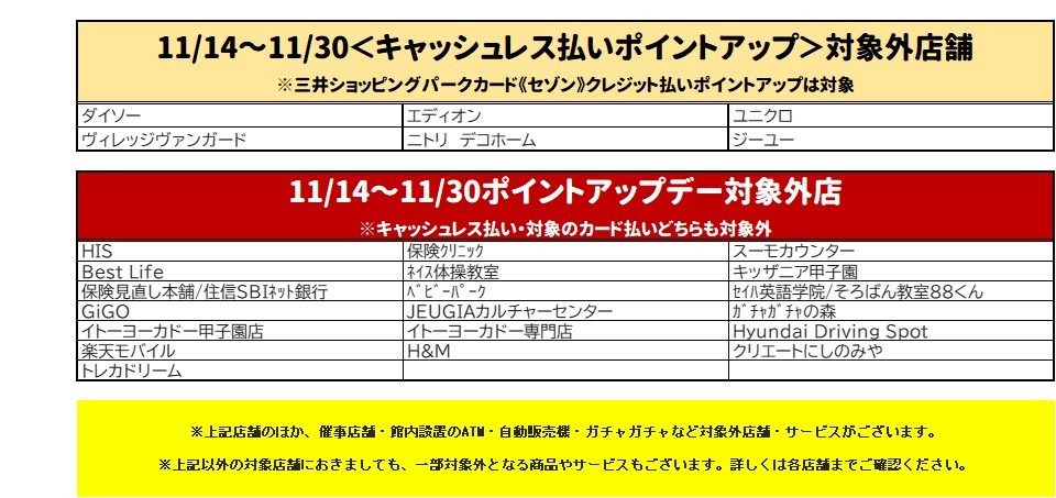 - 11/14(金)~11/30(日)三井ショッピングパークポイント ポイントアップデー開催!