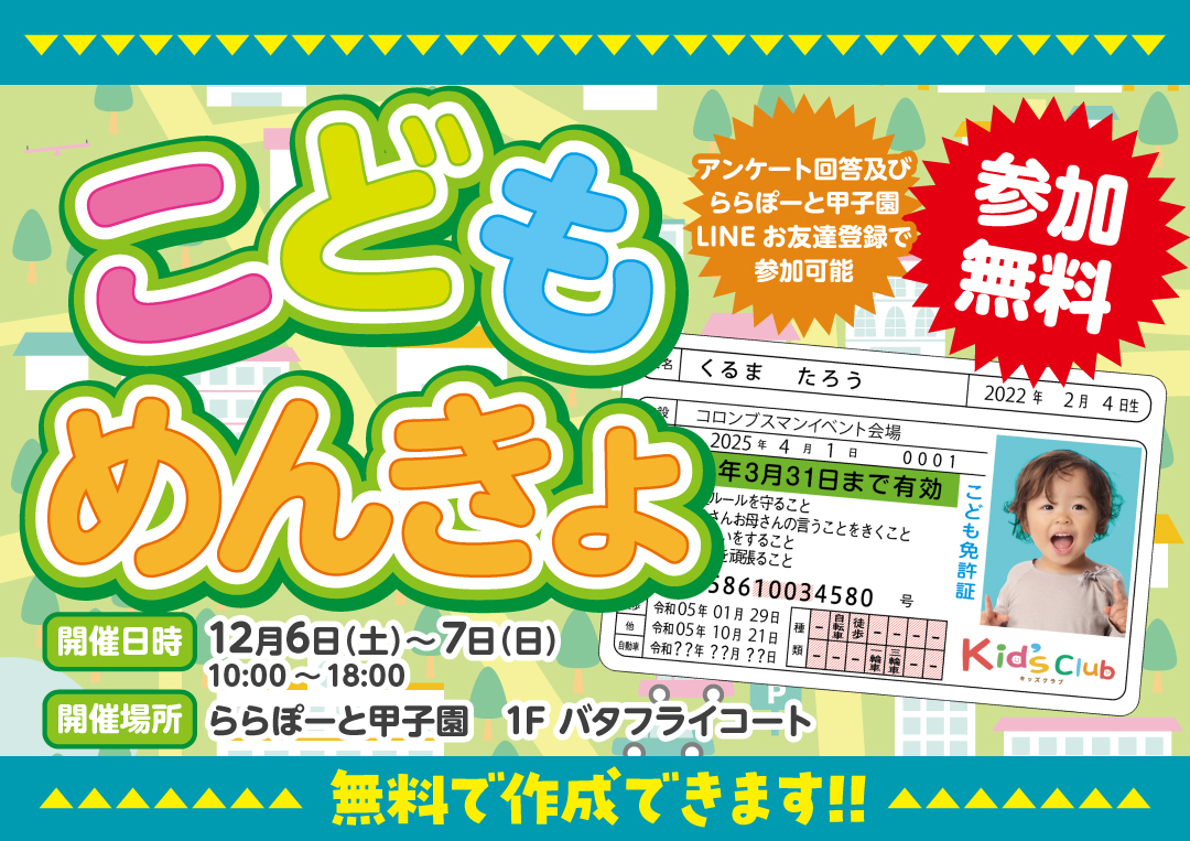 ・参加条件:アンケート回答、ららぽーと甲子園LINEお友達登録