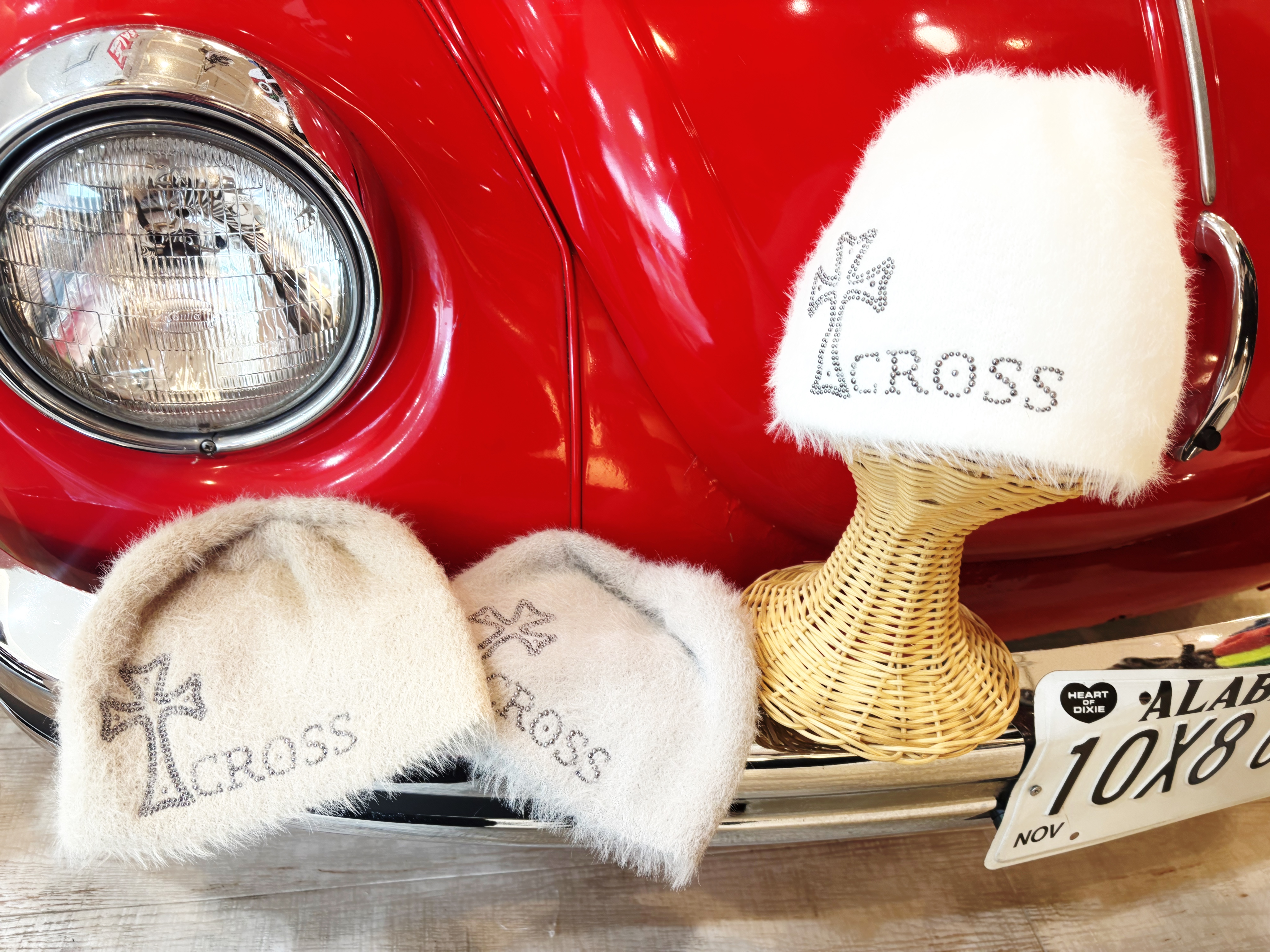 ららぽーと甲子園2F、赤い車が目印の帽子専門店です。