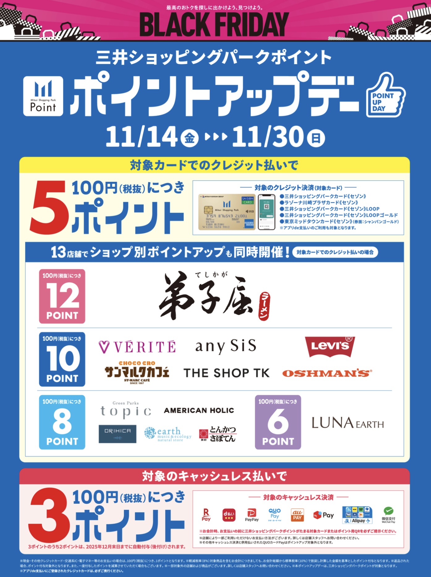 ●11/14(金)~11/30(日)三井ショッピングパークポイント ポイントアップデー開催!