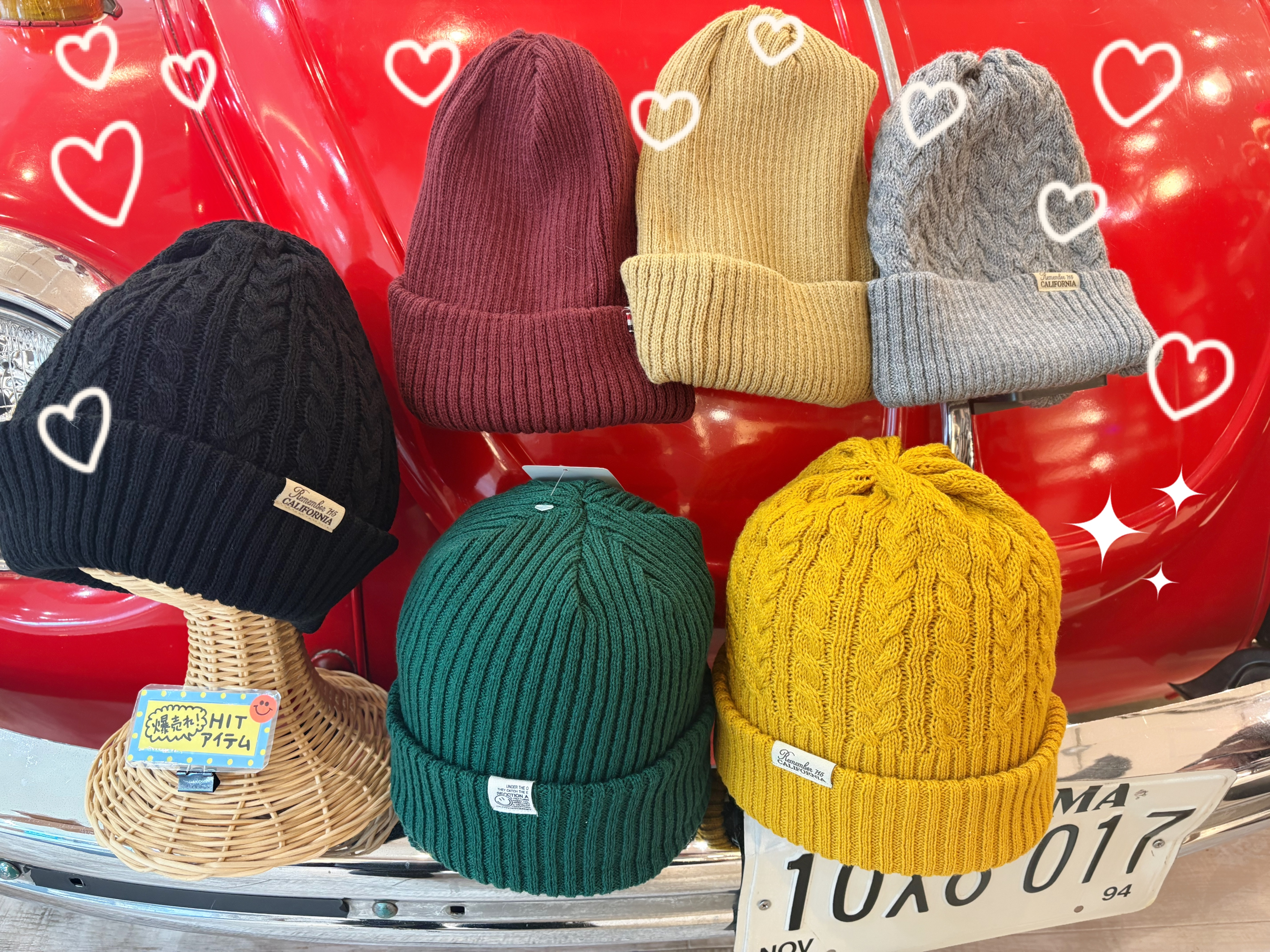 ららぽーと甲子園2F、赤い車が目印の帽子専門店です。