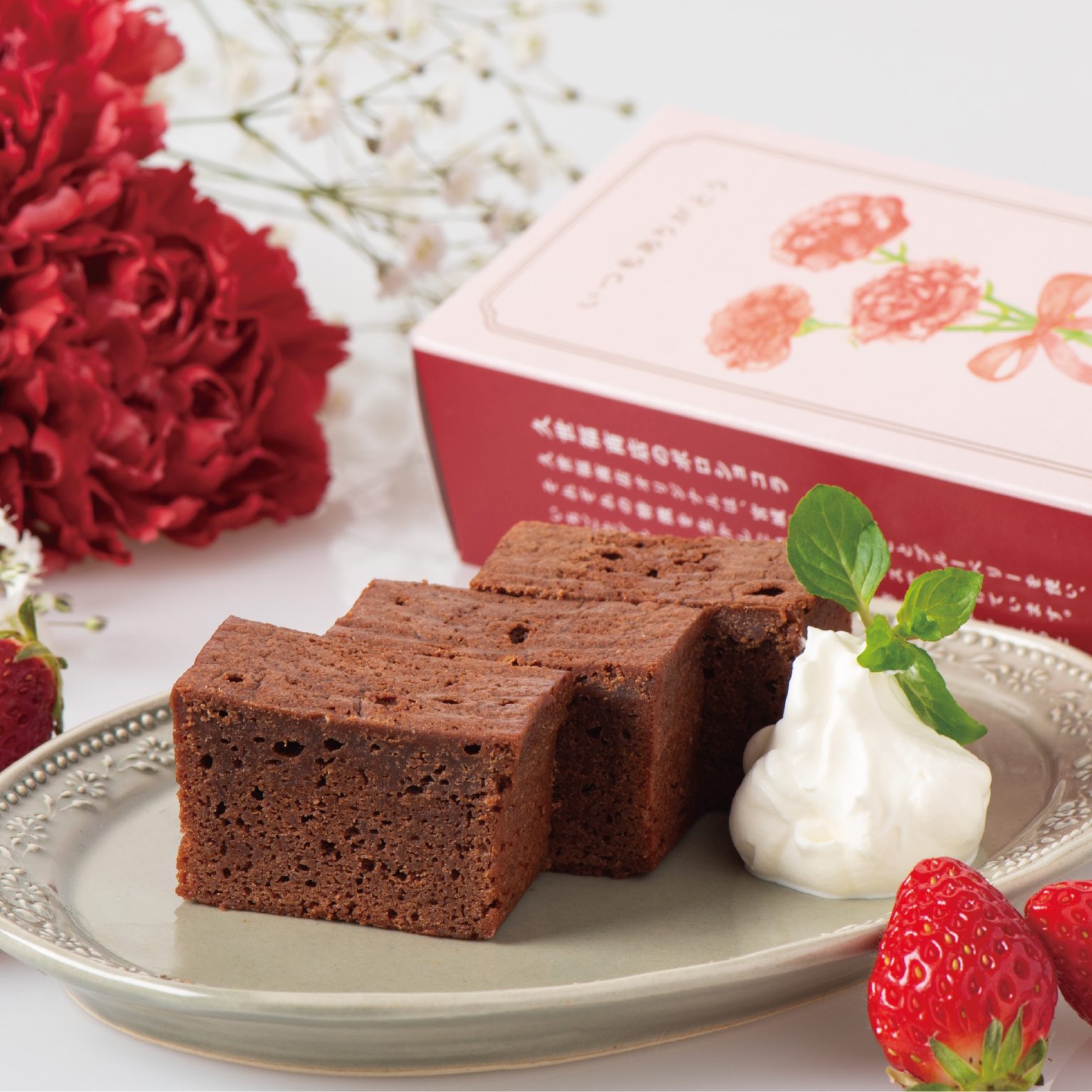 濃厚なチョコに、宮城県産いちごとブルーベリーの華やかな香りを重ねた一品。かわいい母の日限定パッケージ。