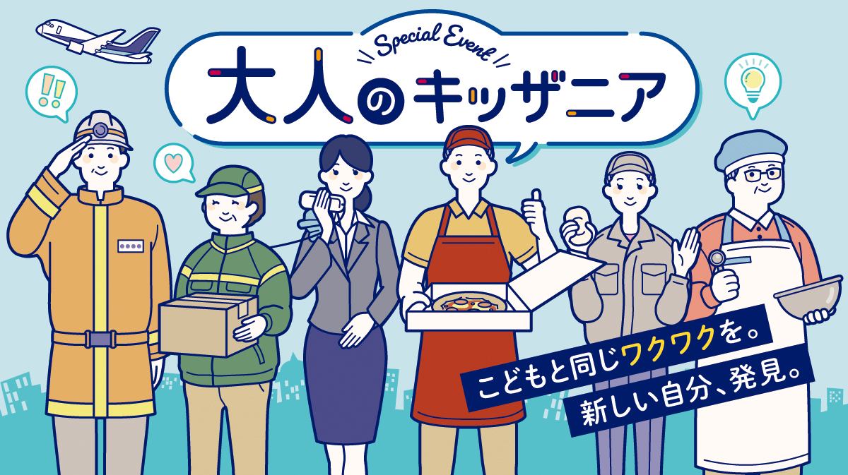 このコンセプトをより多くの方にご理解いただくため、「大人」もこどもと同様の体験ができる「大人のキッザニア」を開催します。
