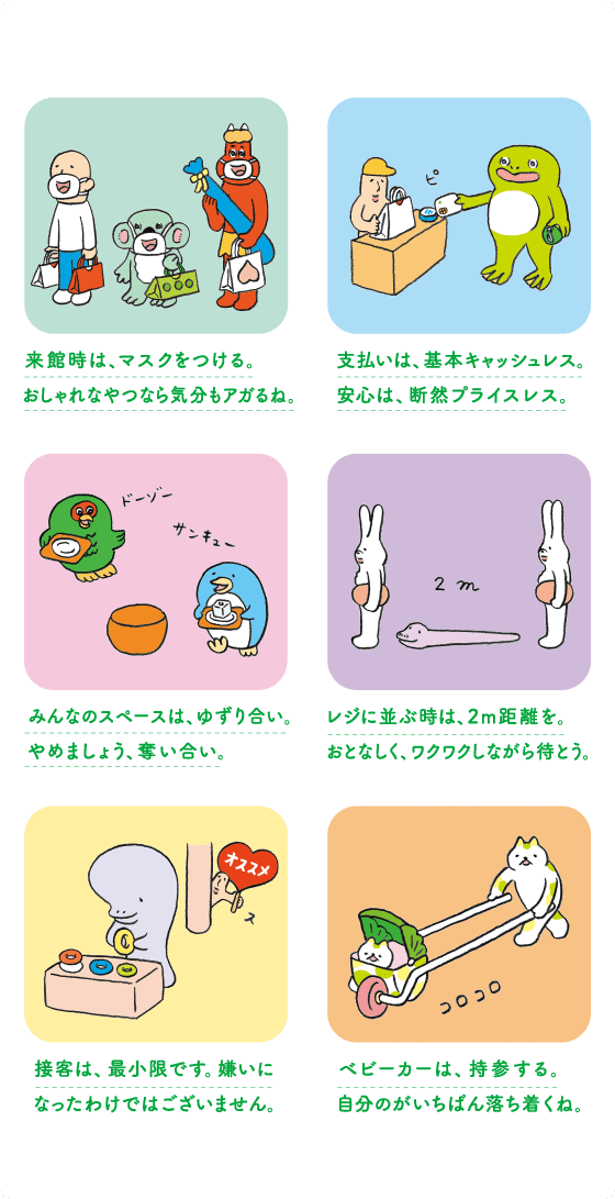 弊社の商業施設では、ご来館のお客様に安心してお買物・お食事をお楽しみいただくため、新型コロナウィルス感染拡大防止のため様々な取り組みを実施しております。ご来館の際はお住まいの都道府県の移動に関する最新の方針をご確認ください。また、政府の協力要請などにより、営業時間・駐車場利用時間・営業内容につきましては急遽変更させていただく可能性がございます。ご来館の際には施設ウェブサイトの「お知らせ」ページから最新の営業時間をご確認のうえお越しください。お客様にはご迷惑をおかけしますが、何卒ご理解賜りますようお願い申しあげます。