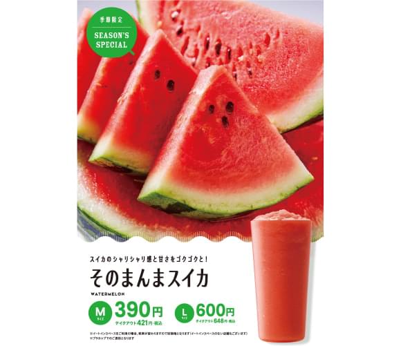 1FそのまんまスイカM 421円、L 648円暑い日にスイカジュースを飲んでサッパリしませんか?