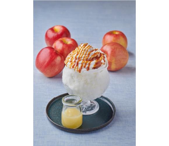 2F信州りんごキャラメル(果肉入りシロップ)1,080円ほろり、とろける。信州みるくクリームのアルプス盛りかき氷!クリームなしのTakeOutもございます。