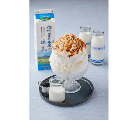 2F信州ミルク1,080円ほろり、とろける。信州みるくクリームのアルプス盛りかき氷!クリームなしのTakeOutもございます。