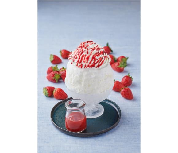 2F信州いちご(果肉入りシロップ)1,080円ほろり、とろける。信州みるくクリームのアルプス盛りかき氷!クリームなしのTakeOutもございます。