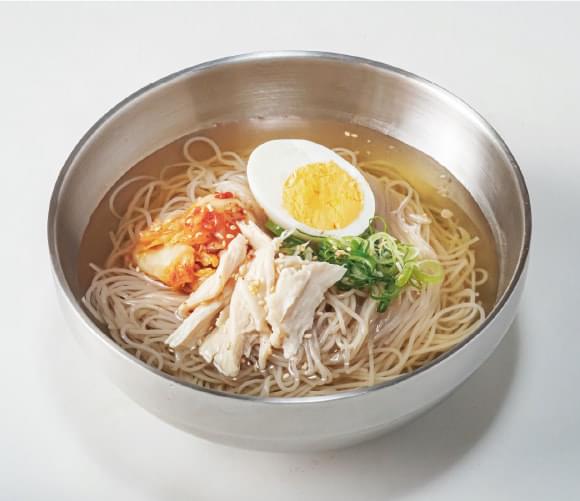 2F韓国冷麺880円本格韓国細麺のコシと「さっぱりスープ」で、暑い夏でもうれしい冷麺。