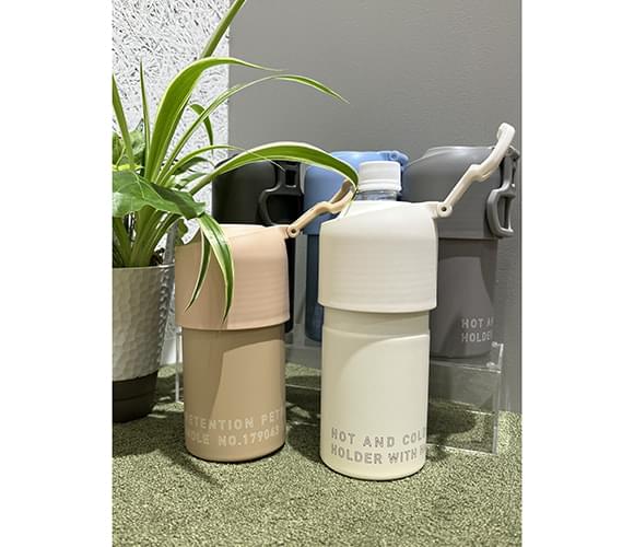1Fペットボトルホルダー1,100円保冷効果があり、長時間冷たさをキープできます。市販の500~600mlのペットボトルに使用可。ハンドル付きで持ち運びしやすいです。