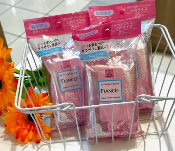 1Fフィアンセ フレグランスボディシート ピュアシャンプーの香り550円サッとひと拭きでピュアな香りをまとうボディシート。ベタつかず触れたくなるサラサラな素肌に。お風呂上がりのような爽やかでさり気ないピュアシャンプーの香り。大人気商品です。