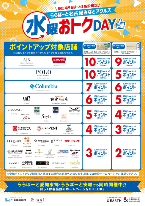 <毎週水曜日開催!水曜おトクDAY>対象店舗限定 三井ショッピングパークポイント ポイントアップデー