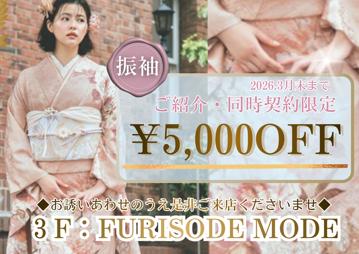 ご紹介来店or同時契約でお振袖5,000円(税込)OFF!