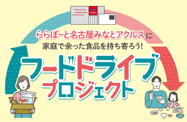 家庭で余っている食品を回収し、名古屋市を通して寄付することで、ありがとうや感謝の気持ちを当施設を中心につなぐフードドライブを、ららぽーと名古屋みなとアクルス初開催!