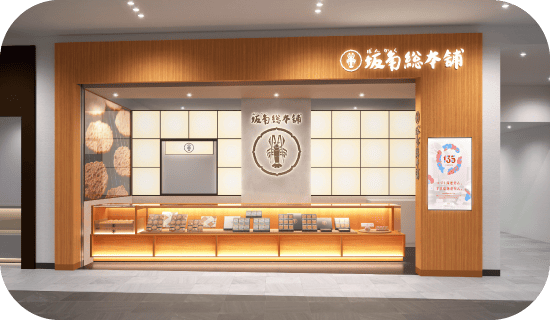 坂角総本舖は、江戸時代に徳川家へ献上されていた、えびはんぺいに創意工夫を重ねて生み出した海老せんべい〈ゆかり〉を中心に、自然の恵みを生かしたお菓子づくりをしています。
