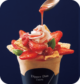 安心安全で、お求めやすい価格と豊富な商品バリエーションを展開し、こだわりの製法で一枚一枚焼き上げたクレープ生地は、サクサク、もちもちと変化する食感をお楽しみいただけます。