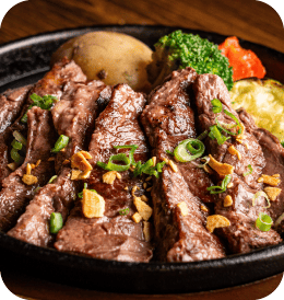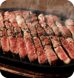 熱々の鉄板で焼きたてをご提供、お好みの焼き加減でお召し上がりいただけます。