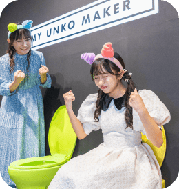 マイうんこメーカー。好きな色の便器に座って、力強く踏ん張り、自分だけのオリジナルうんこを生み出します。