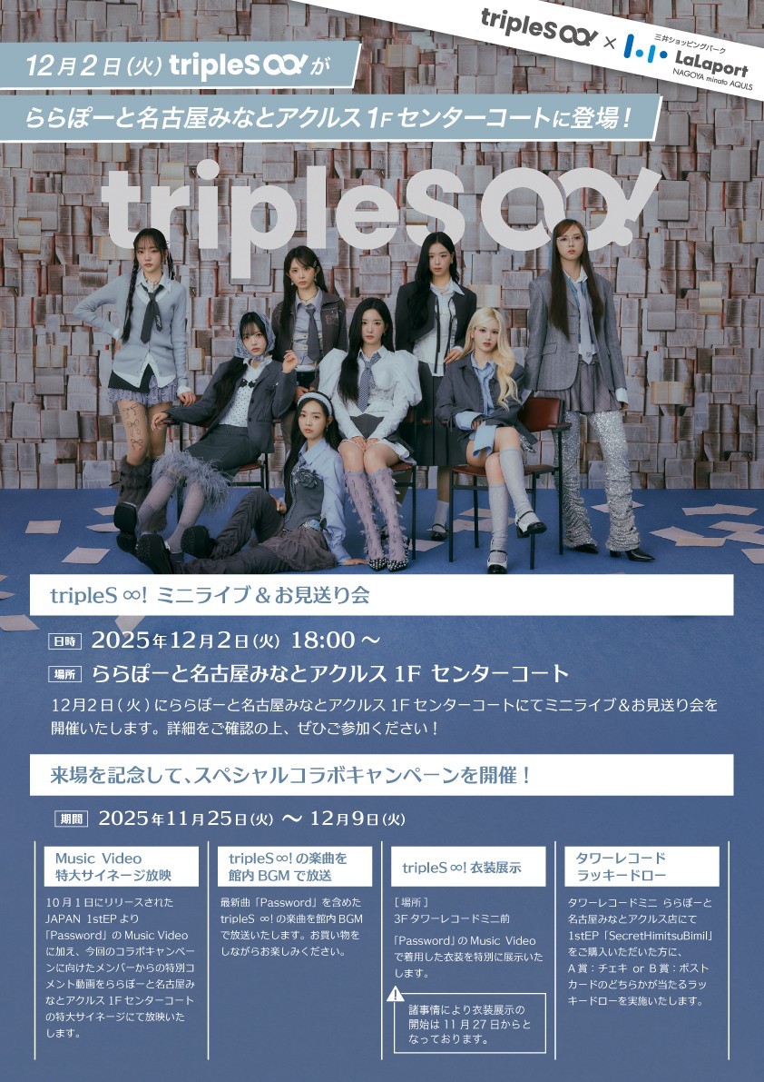 12/2(火)『tripleS』来場をを記念して、ららぽーと名古屋みなとアクルスにてアーティストコラボキャンペーンが決定いたしました!