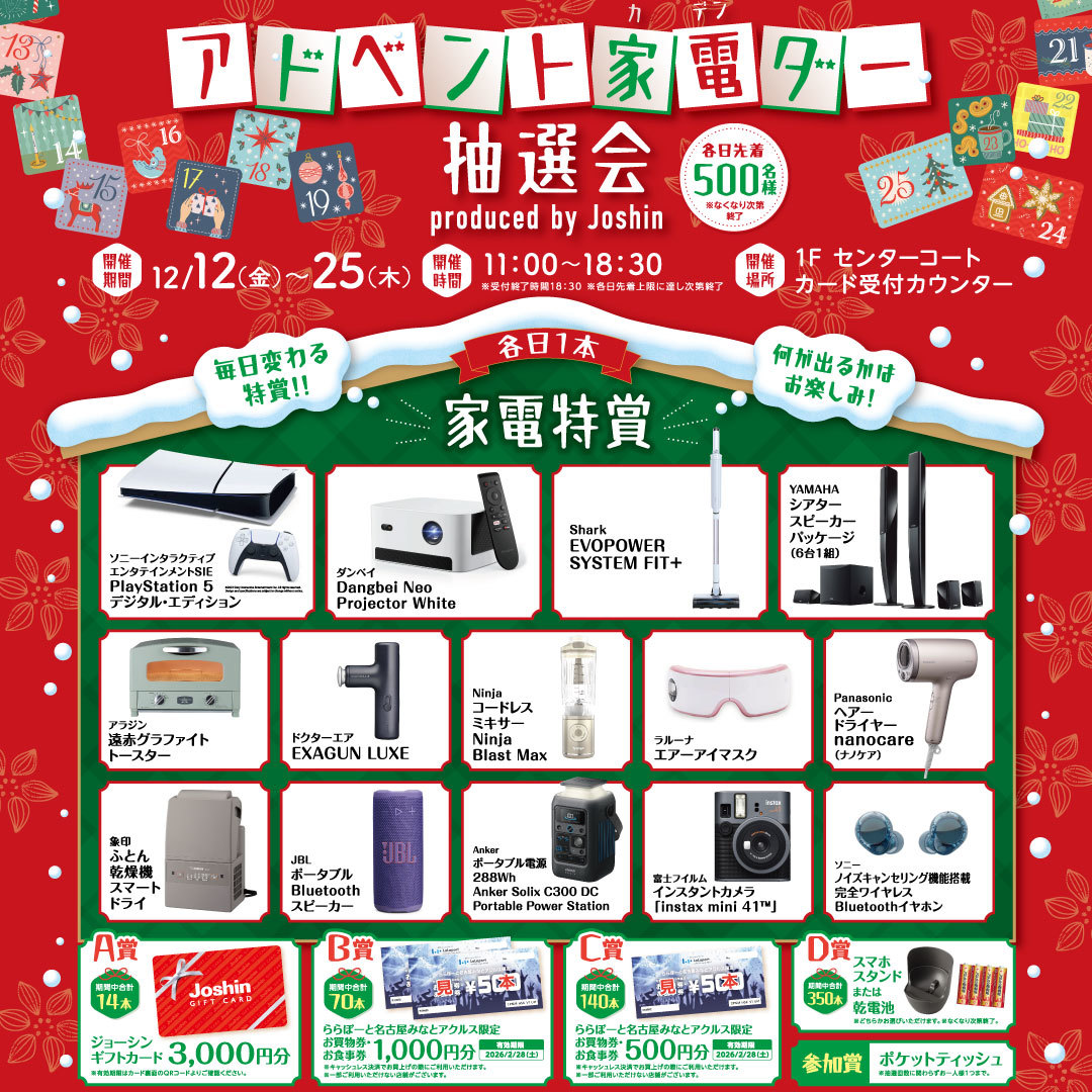 - 毎日変わる家電特賞!【アドベント家電ダー抽選会】開催!!