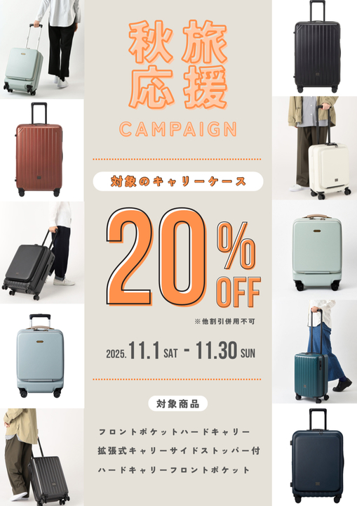 秋旅応援!キャリーケース20%OFFキャンペーン