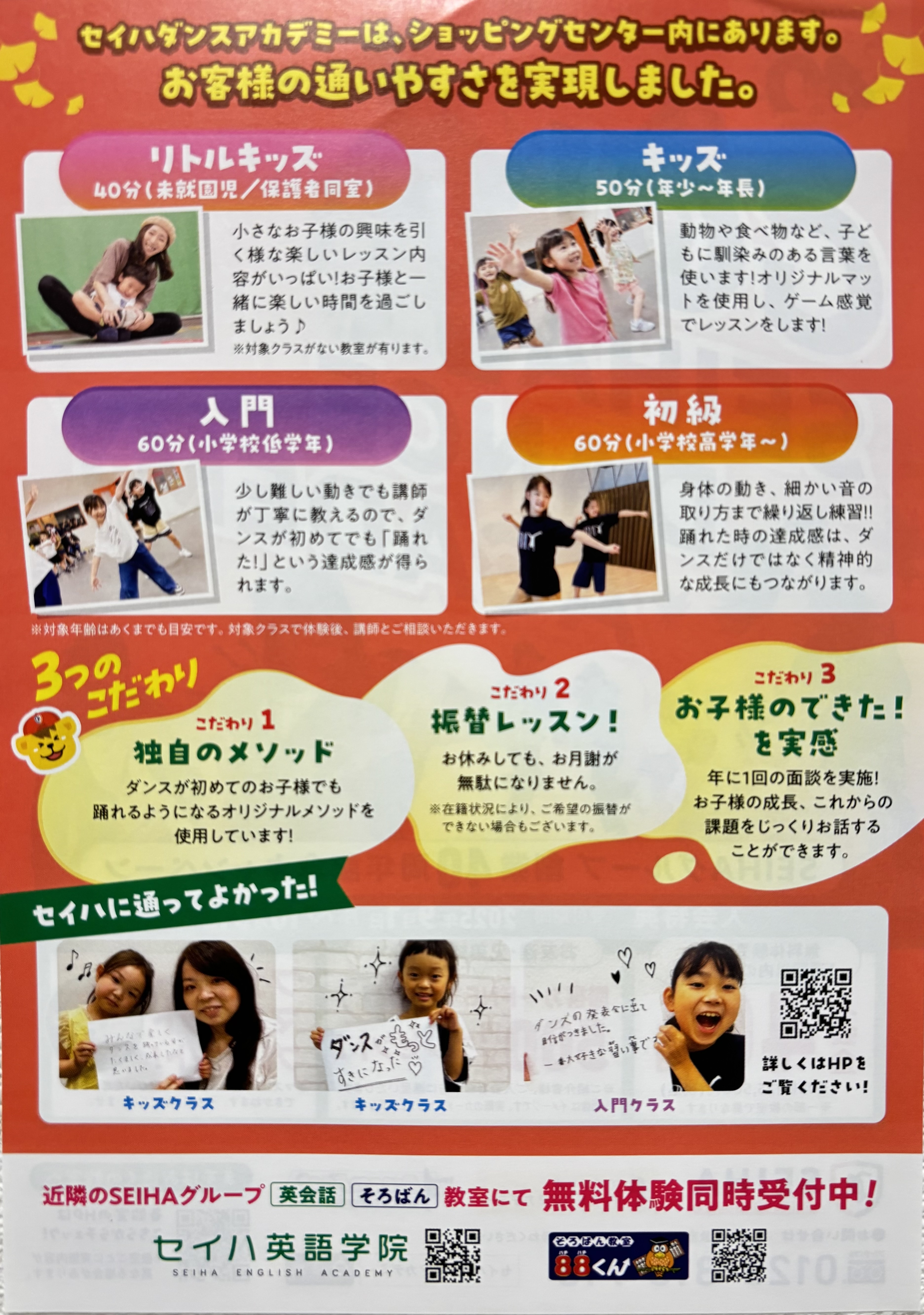 2歳から通えるダンス教室、セイハダンスアカデミーです♪
