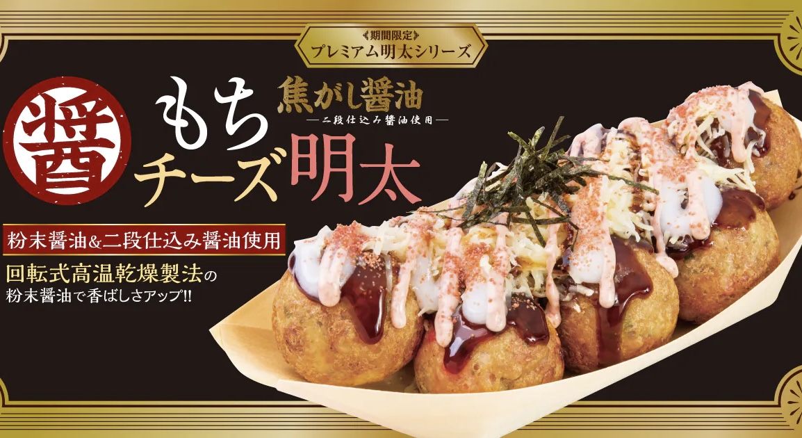 特製の 「焦がし醤油だれ」 は、粉末醤油と二段仕込み醤油を組み合わせることで、醤油の旨味とコク、そして、 “香ばしさ” をより一層引き立てる味わいに仕上げました。さらに、香ばしい 「焦がし醤油だれ」 と相性抜群の “とろ~り” とした 「もちソース」 が、トッピングの 「モッツァレラチーズ」 「明太マヨ」 「乾燥博多明太子」 と絡み合い、濃厚で贅沢な味わいがお口いっぱいに広がります。