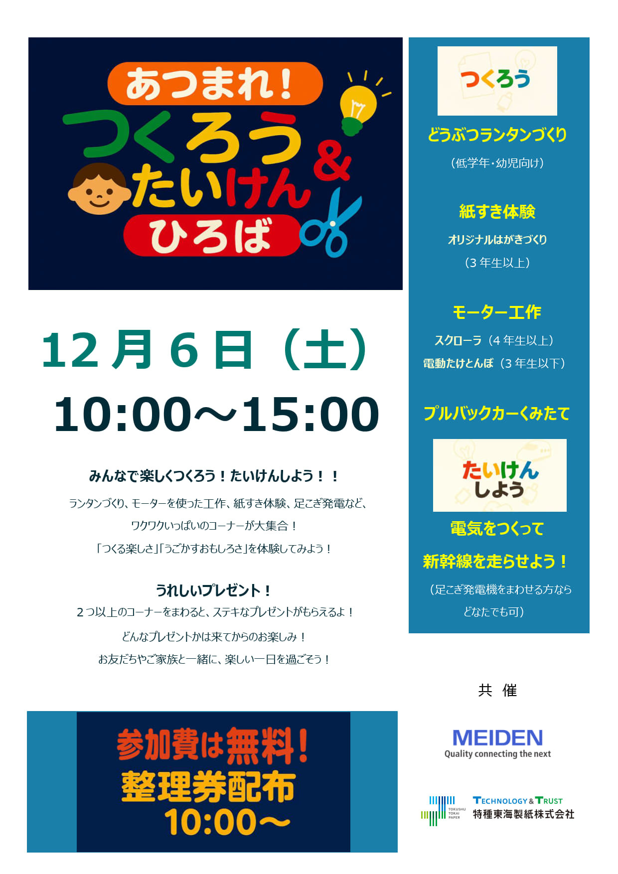 あつまれ!つくろう&たいけんひろば 12月6日(土) 開催決定!