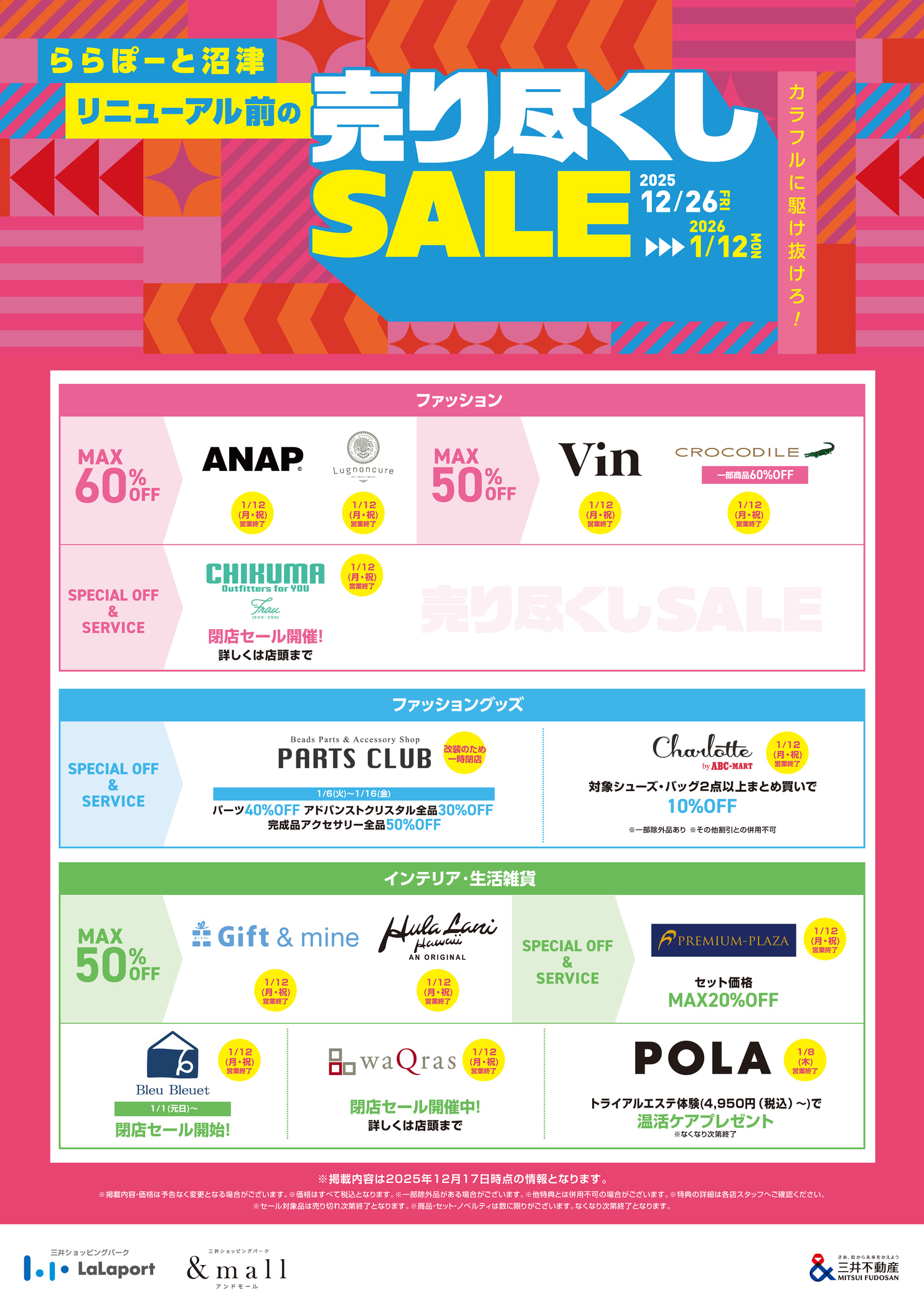 ららぽーと沼津リニューアル前の売り尽くしセールを開催!