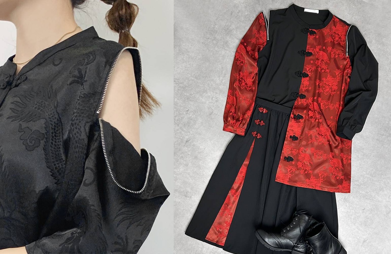 光沢感あるジャガード生地が上品&モードでスタイリッシュな印象に。目を惹くチャイナボタンがおしゃれ心くすぐります。