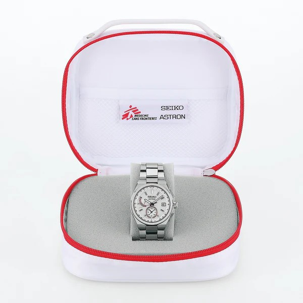 ファーストエイドキットをイメージした専用ウオッチケースも付属されており、売り上げの5%は国境なし医師団へ寄付されます。