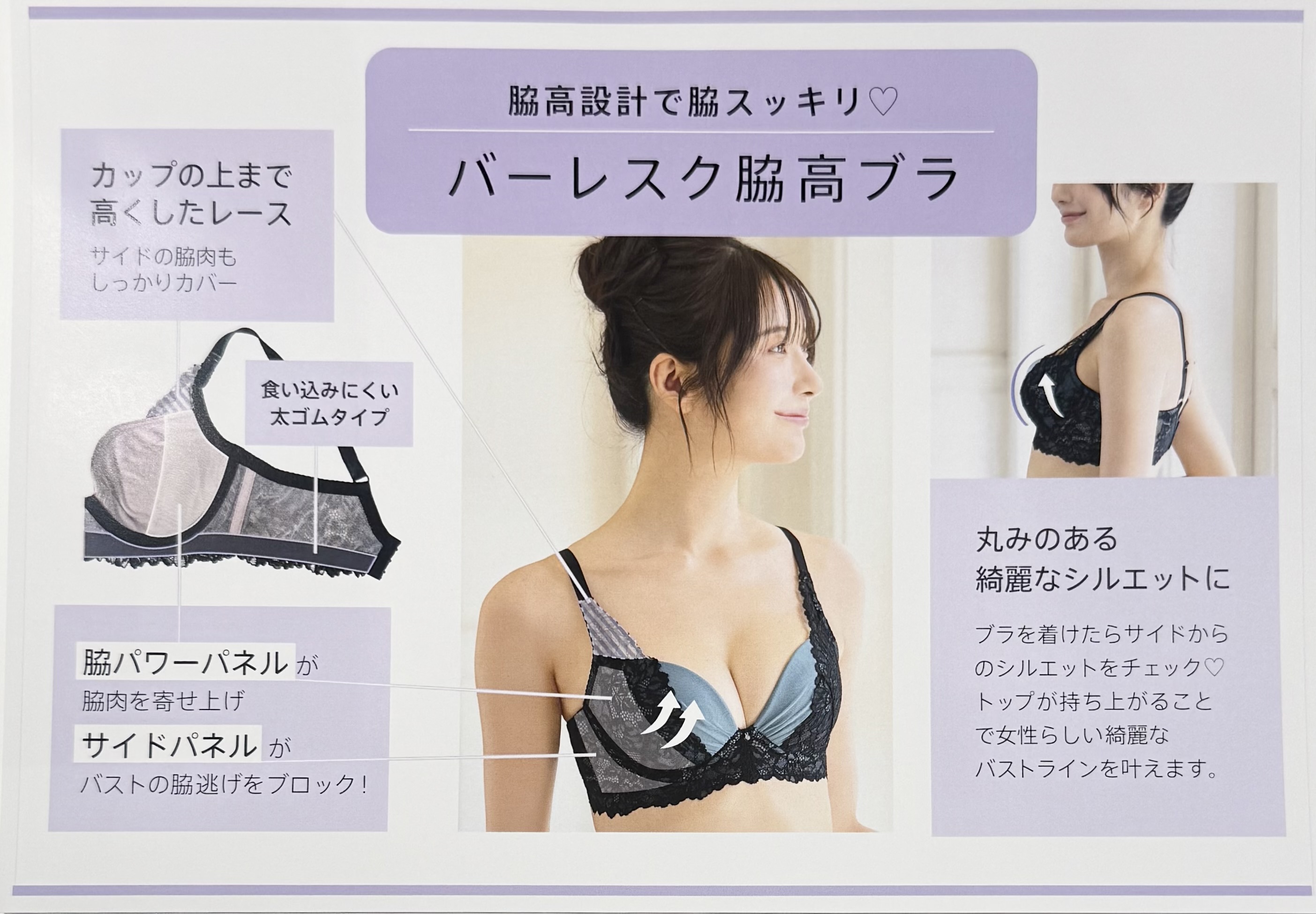 デザイン性と機能性を兼ね備えた補整ブラジャーとして人気の『バーレスク脇高ブラ(R)』シリーズから、新作ブラ&ショーツセットが登場しました!