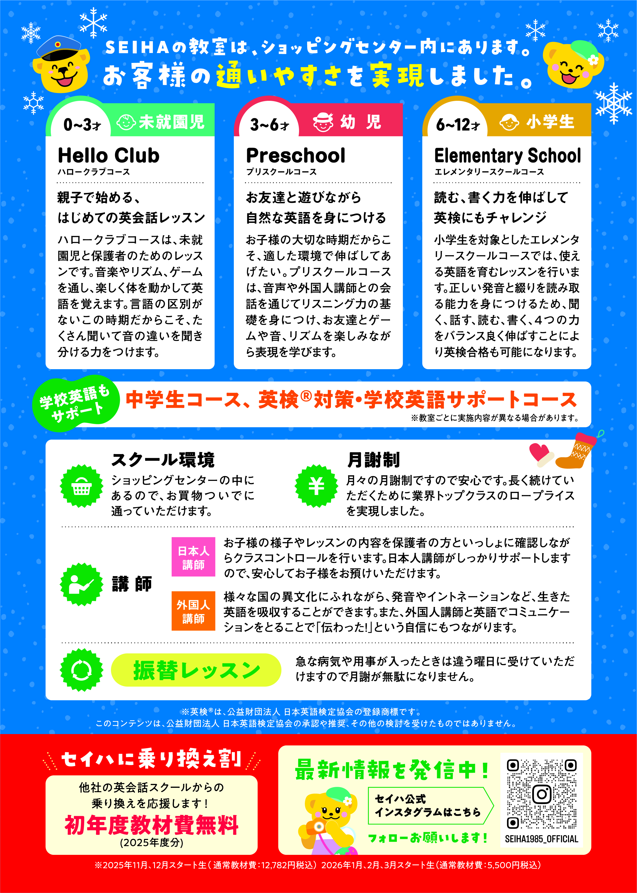 体験レッスン受講後、1週間以内のご入会で、今年度分の教材費が無料に!!
