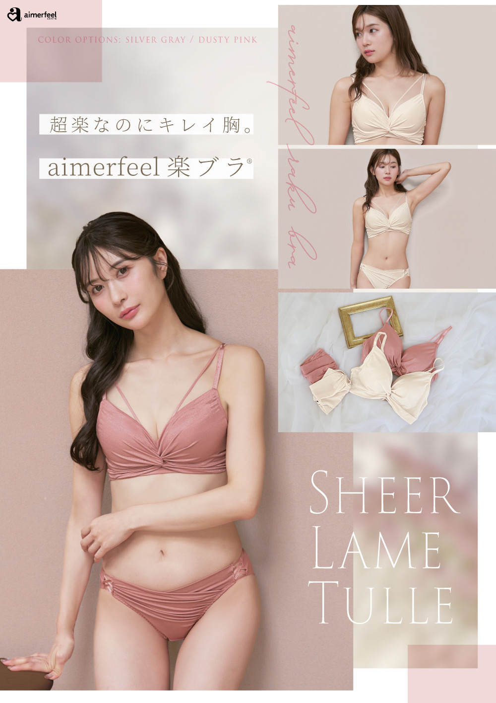 楽なのに、美バストメイク!「aimerfeel楽ブラ(R)」シリーズに、透け感のある華やかなラメチュールを使用したエレガントな一枚が登場。