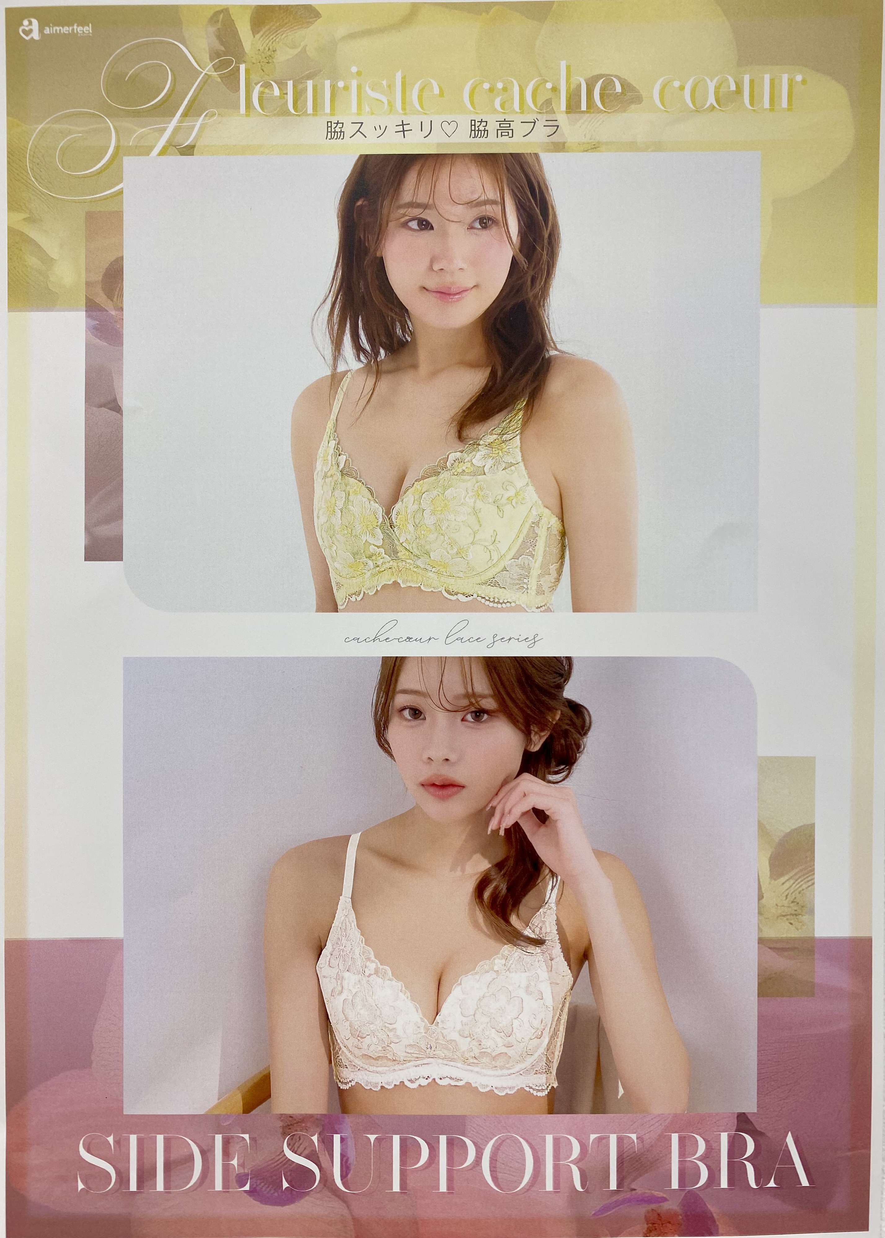 当店人気No.1シリーズ!「カシュクールレース脇高ブラ(R)」シリーズから、刺繍レースが華やぐブラセットが登場。