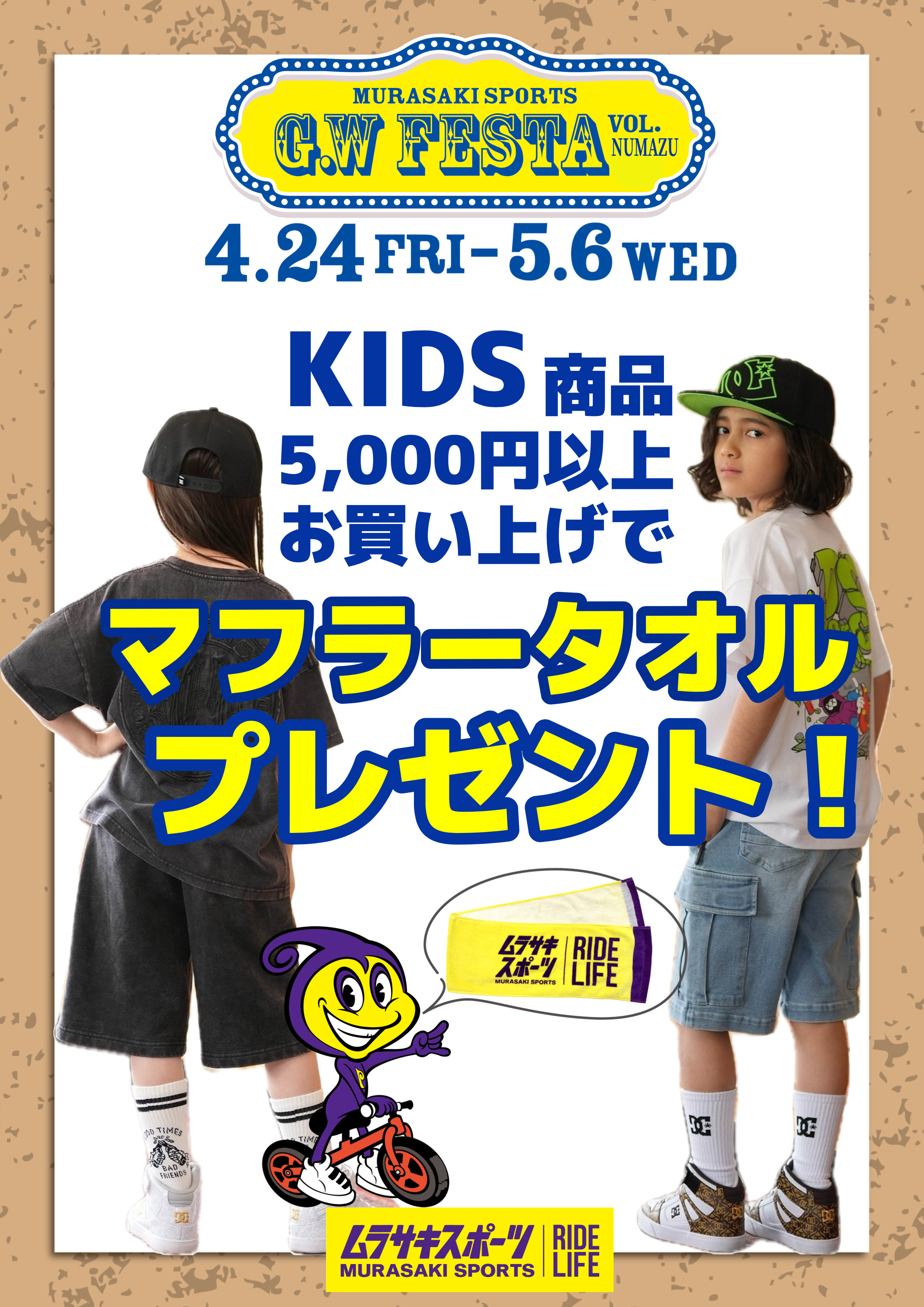 - 4/24(金)〜5/6(祝)『GW FESTA』マフラータオルプレゼントキャンペーン!