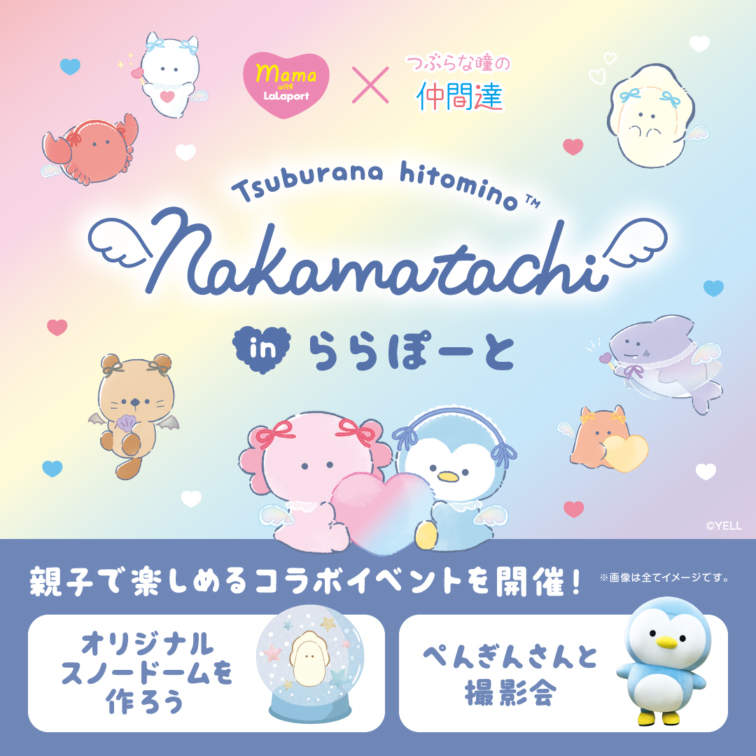 SNS を中心に人気急上昇中の「つぶらな瞳の仲間達」シリーズと『ママ with ららぽーと』のコラボインベントを開催!かわいいキャラクター達とイベントを楽しもう!
