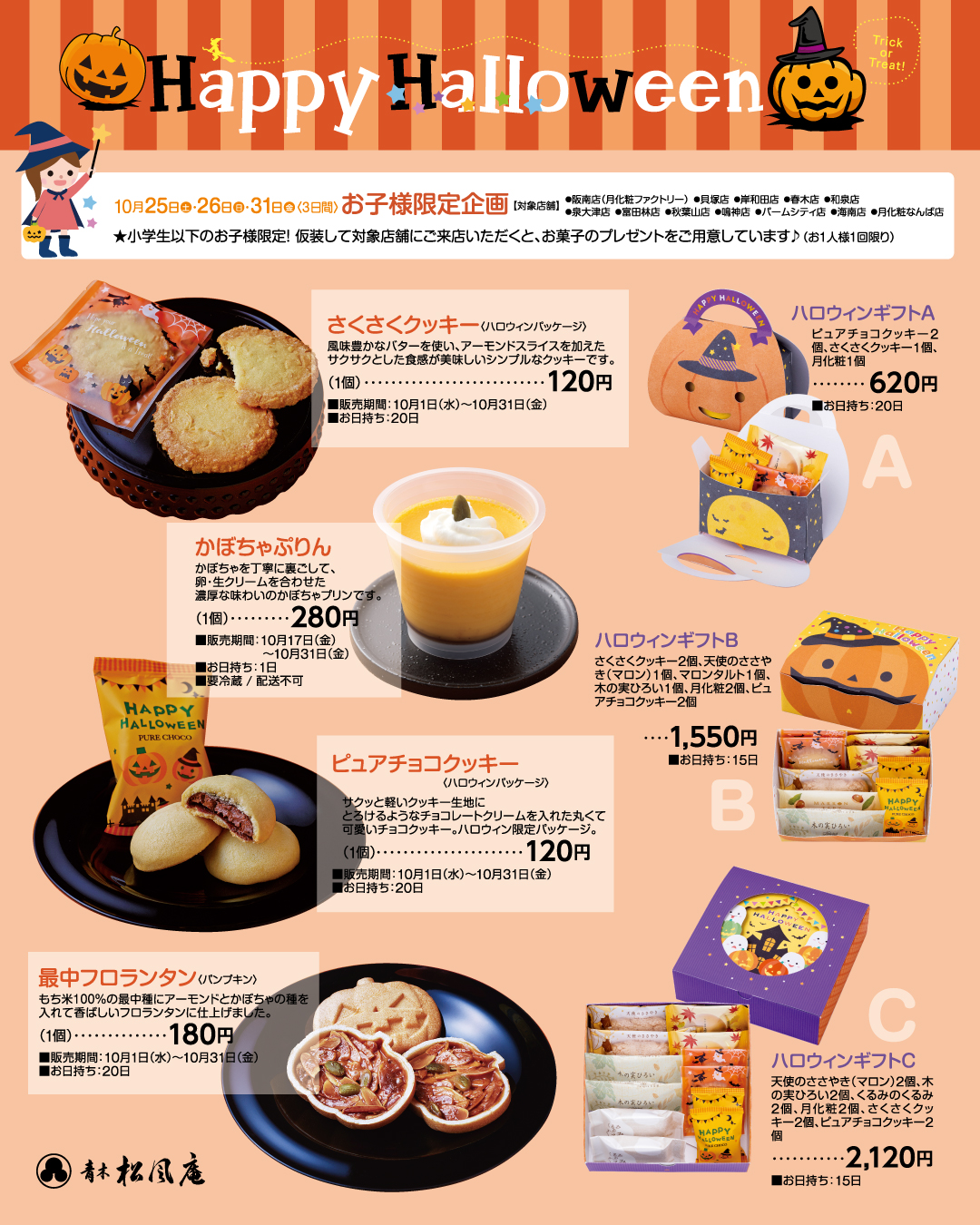 ハロウィンモチーフの個包装で、配る用にぴったりな焼き菓子など多数ご用意しております。