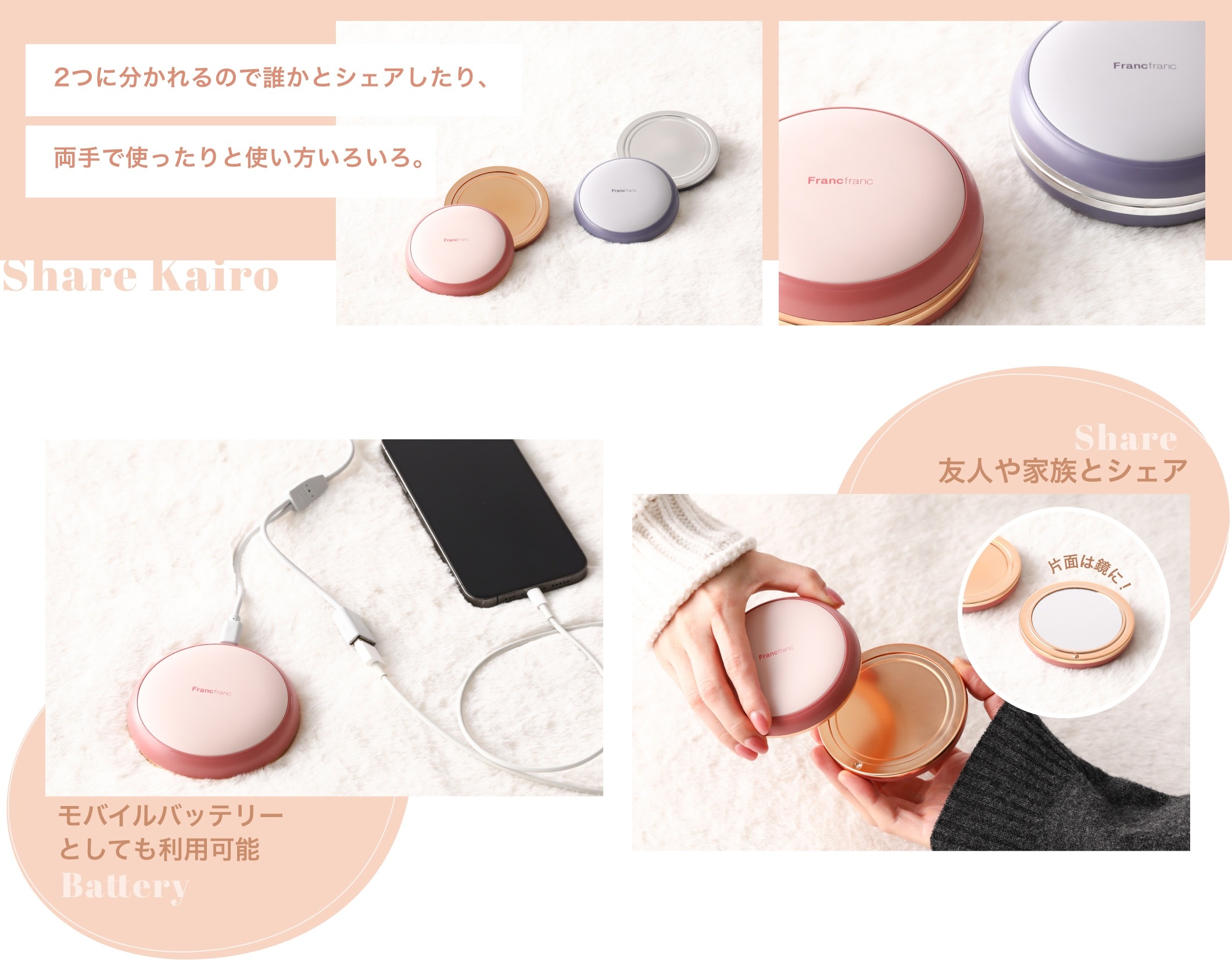 Francfrancらしいカラーバリエーションと、便利な機能もばっちりな繰り返し使える充電式カイロです♡