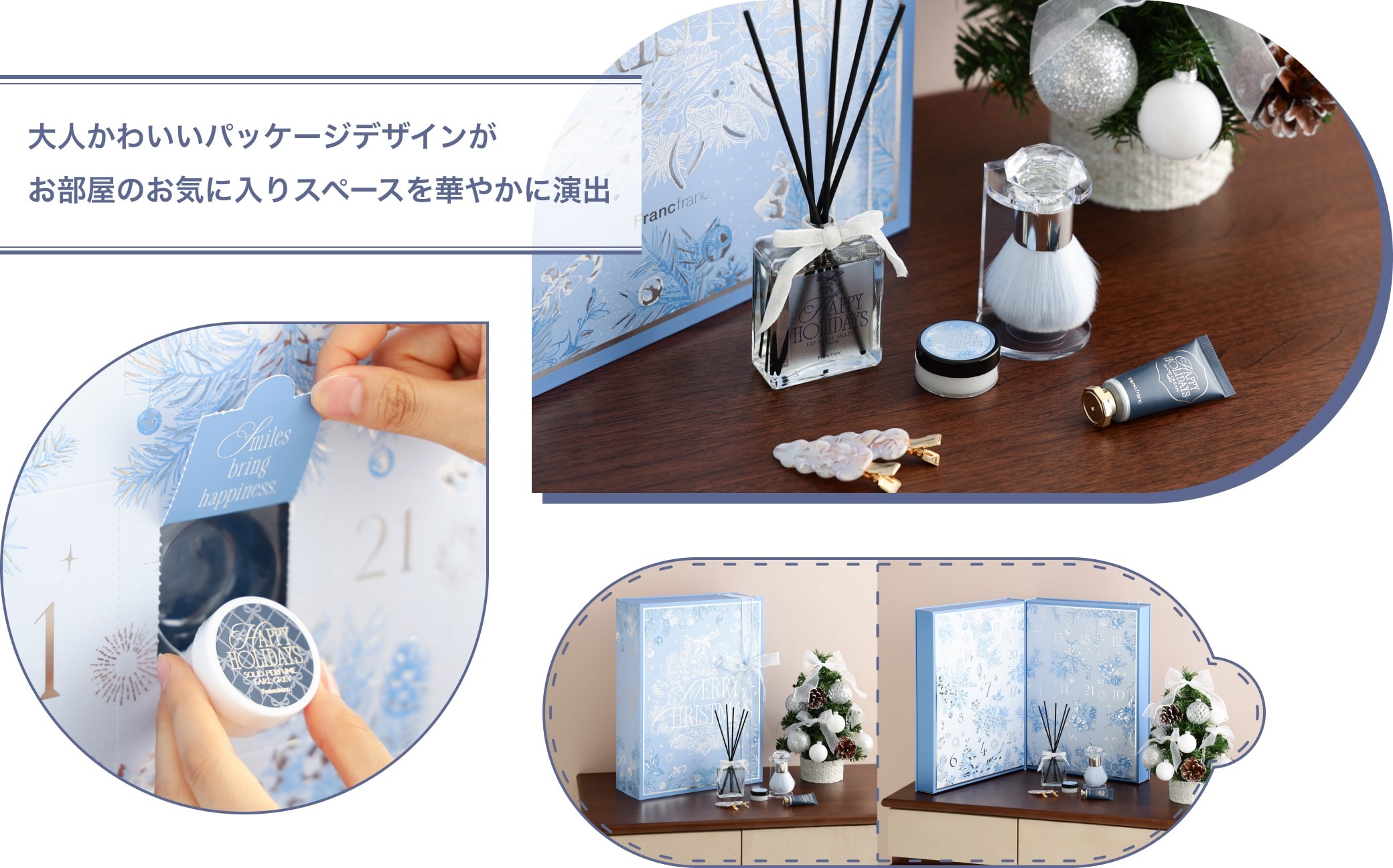 アドベントカレンダーでしか手に入らない限定商品も封入したホリデーシーズンにぴったりのアイテムです。