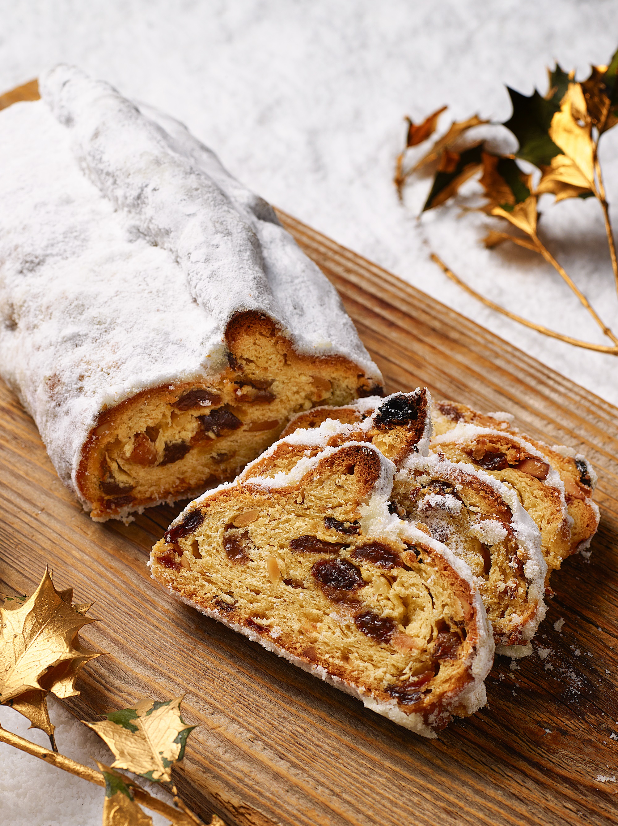 ドライフルーツ・ナッツ・バターをたっぷり練りこみ、独自の製法で丁寧に仕上げた自慢のシュトーレンです。
