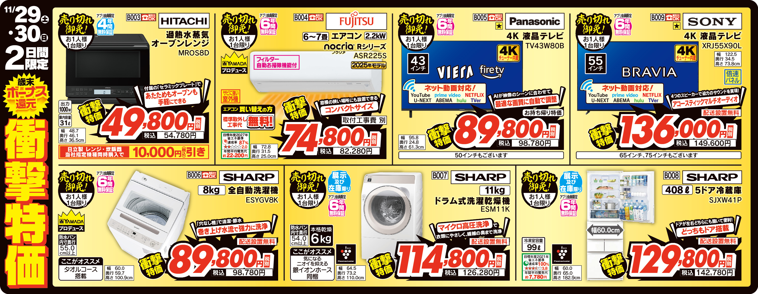 11/29(土)・30(日) 2日間限定 歳末ボーナス還元 衝撃特価商品満載!