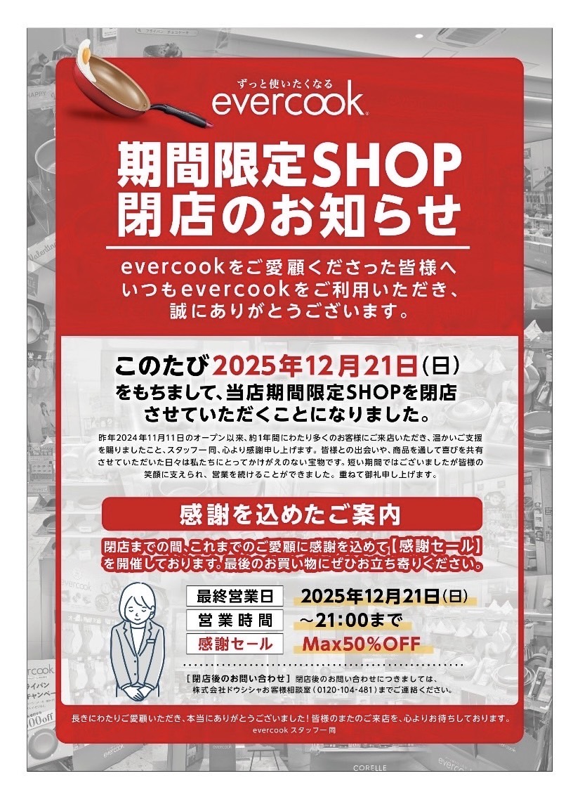 このたび2025年12月21日(日)をもちまして、当店期間限定SHOPを閉店させていただくことになりました。